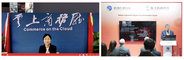 此次漢諾威工博會,我司同阿里云、三維通信、舜云互聯(lián)、申昊科技等多家浙江知名企業(yè)共同亮相浙江省商務(wù)廳主辦的2022浙江服務(wù)貿(mào)易(德國)數(shù)字工業(yè)展,向全世界展現(xiàn)“浙江服務(wù) 服務(wù)全球”的魅力。當?shù)貢r間5月30日上午,浙江省駐德國商務(wù)代表處主任張漢東在現(xiàn)場主持工業(yè)展開幕式,浙江省商務(wù)廳服務(wù)貿(mào)易處處長莊謹在線出席開幕式。