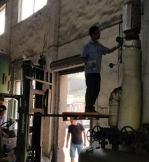 △勞動(dòng)人民的智慧還是無窮的,現(xiàn)場(chǎng)技術(shù)因?yàn)楦叨炔粔騽?dòng)用了叉車。